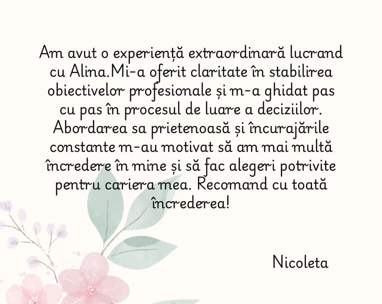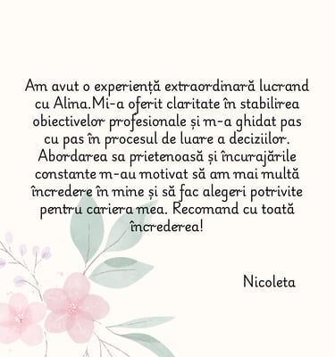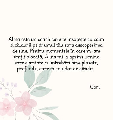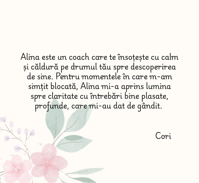În coaching, creez un spațiu sigur și structurat în care poți reflecta, înțelege și face pași concreți spre evoluția ta.